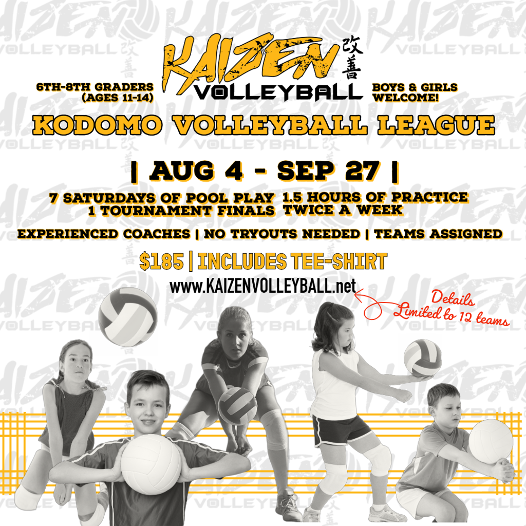 Kodomo, meaning "child" in Japanese, is a perfect fit for our youth league this fall. We’re excited to provide you and your child with a deeper understanding of the sport of volleyball!